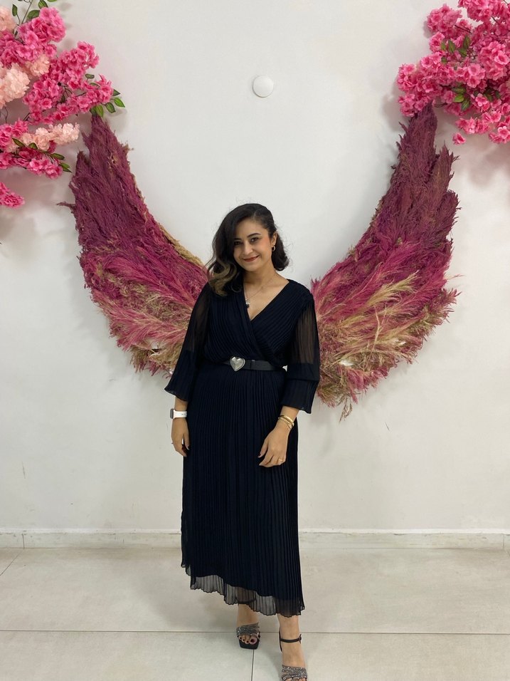 Siyah piliseli uzun elbise, V yaka ve bol kesimlidir. İnce askılı kollara sahip olup, sentetik kumaştan üretilmiştir. Düğün gibi özel anlar için uygundur. Ürünü satın aldığımda astarında ufak delikler vardı. Kullanmam gerektiğinden iade işlemleri yapmadım. Elbise altında görülmediğinden düzeltme yapmadım. Ürün kemersiz olarak satılmaktadır.