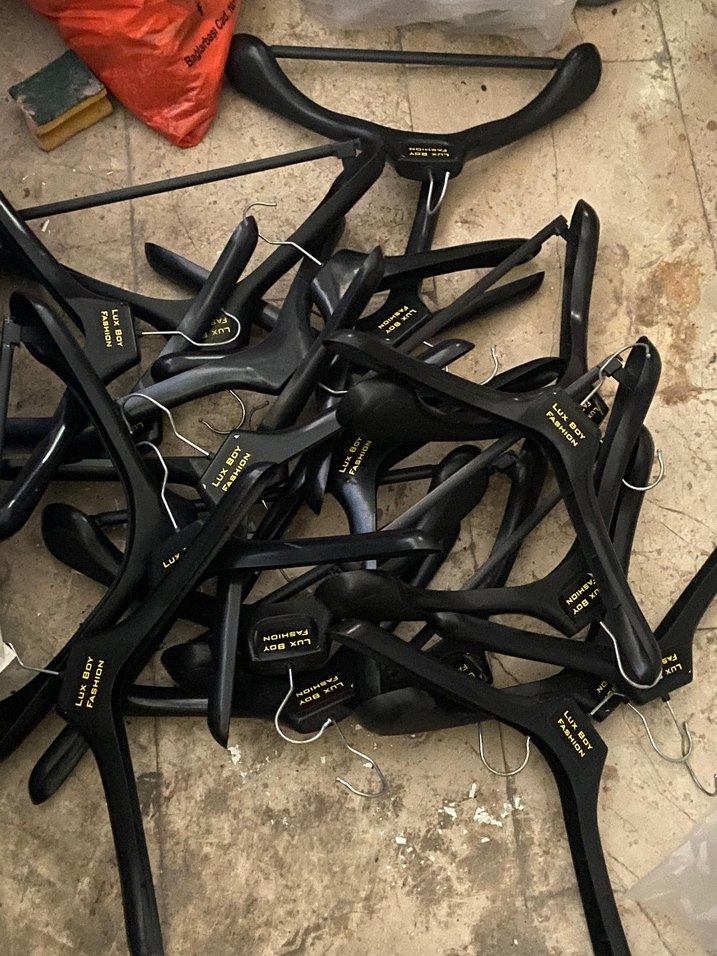 Metal askılı siyah plastik askılar giysileri güvenle tutmak için tasarlanmıştır. Pürüzsüz yüzeyli ve sağlam yapılıdır. büyük olandan 8 adet diğerinden 17 adet mevcut adet fiyatı 25 tl dir