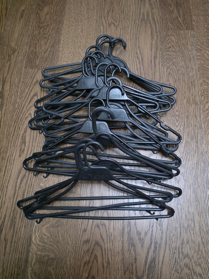 Kanca ve askı özelliklerine sahip siyah plastik askılar seti. Dayanıklı ve hafif yapısıyla kıyafetlerinizi düzenlemeye uygundur. 23 adet fiyatıdır