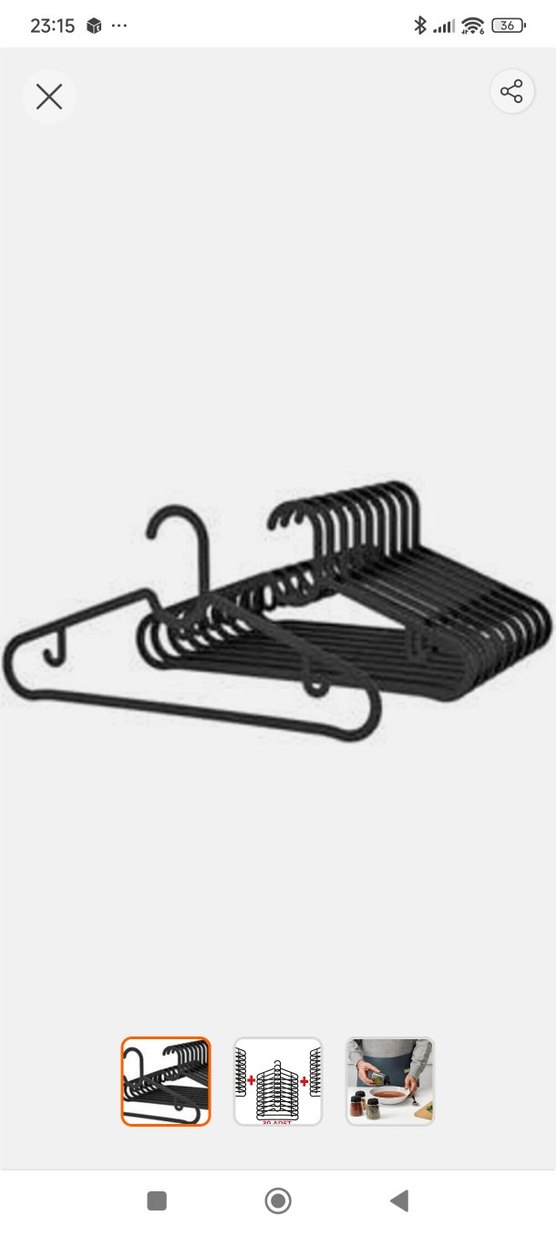 Çeşitli giysiler için kancalı siyah plastik askılık seti. 30 tane