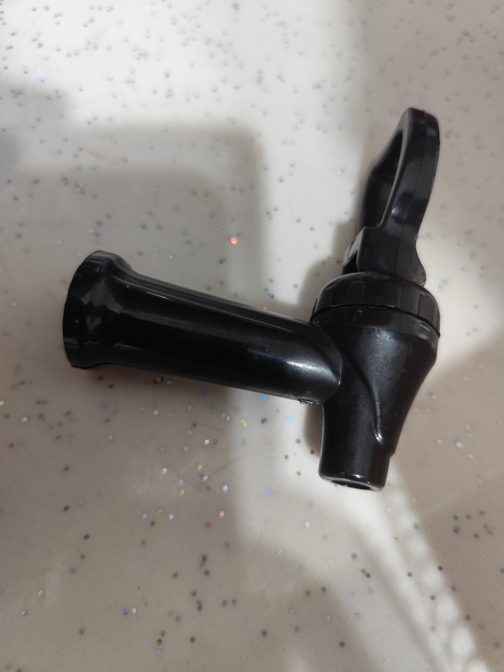Siyah plastik musluk, mutfakta kolay sıvı dağıtımı için tasarlanmıştır. Dayanıklı ve kullanışlı araç.