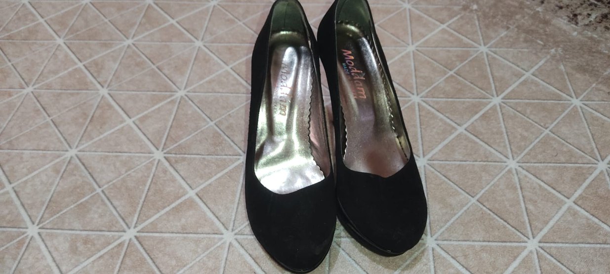 Siyah platform ayakkabı bir kere kullanıldı. Yerinde kaldıkça biraz dökülme yaptı.Fotoğraflarda gösterilmiştir.Toplu alımlarda pazarlığımız mevcuttur.