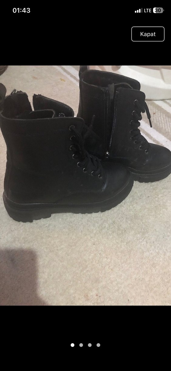 Siyah platform topuklu, lastik malzemeden bağcıklı ve tokalı kadın botları. Günlük kullanıma uygun grunge punk goth tarzında.