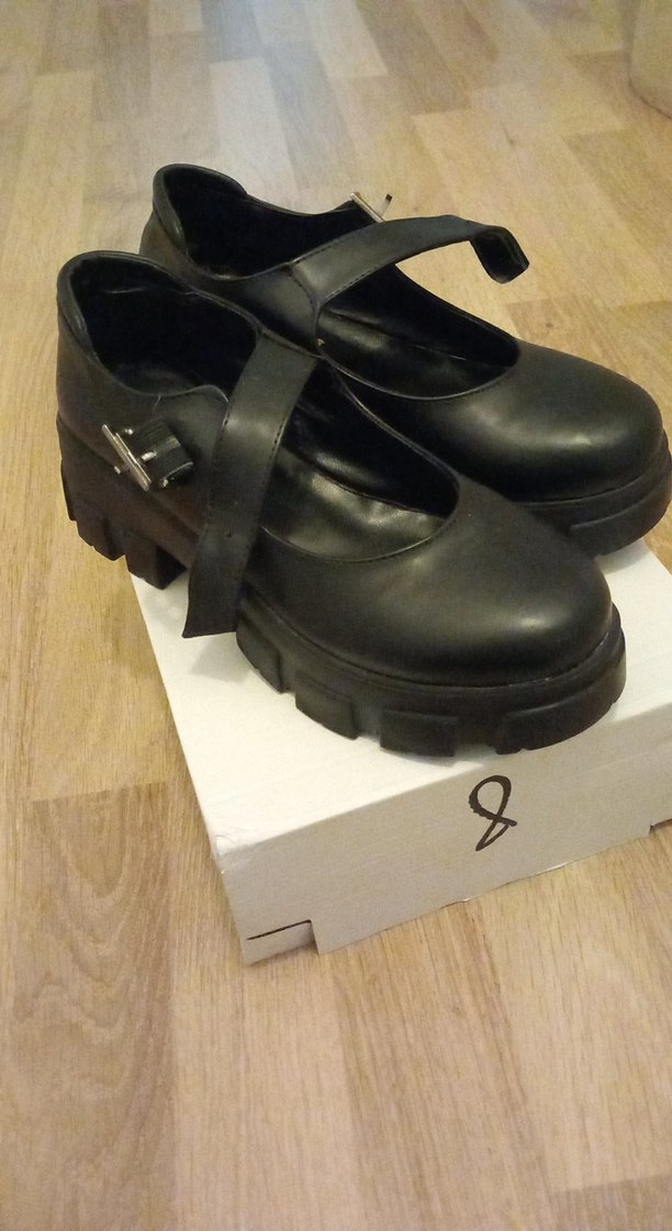 Siyah platform topuklu, tokalı kayışlı, gotik tarzda kauçuk malzemeden yapılmış kadın ayakkabısı, romantik akşamlar için uygun. Kızım icin almıştım vır kere düğünde kostümüyle giydi.