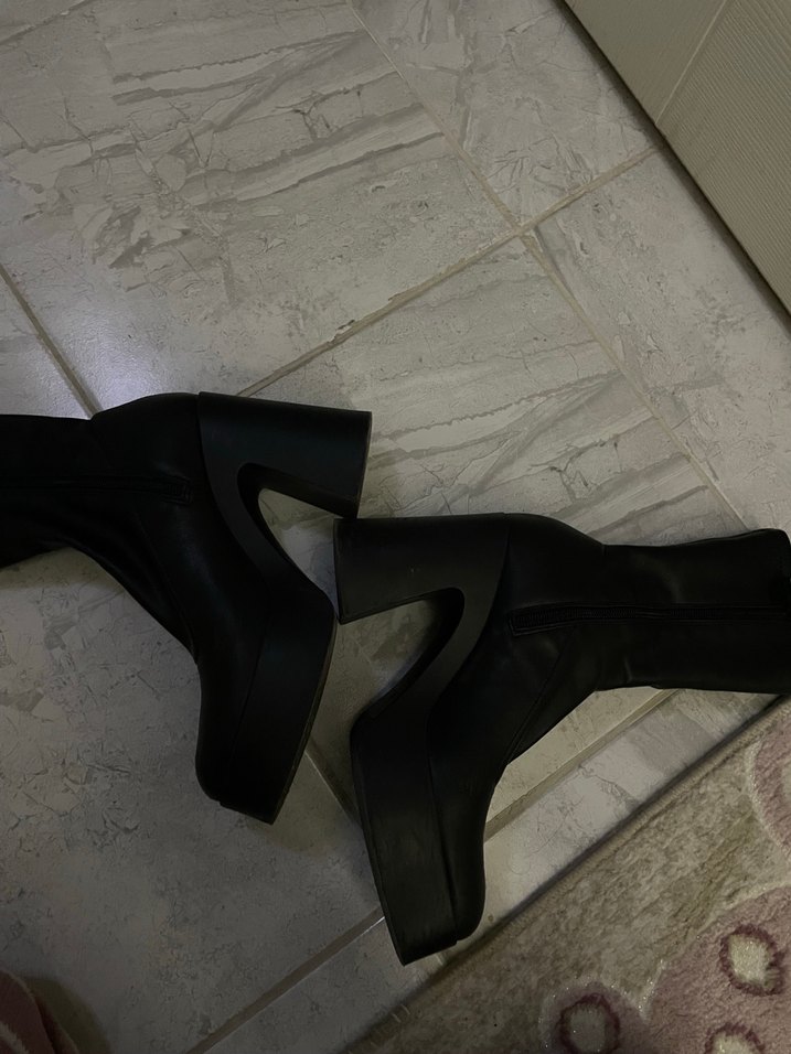 Ayağınız 37-38 arasındaysa da olur. İçin yumuşak kumaş sıcak tutar. Siyah platform topuklu, tokalı kauçuk gotik kadın botları, günlük kullanıma uygun şık ve cesur bir görünüme sahiptir.