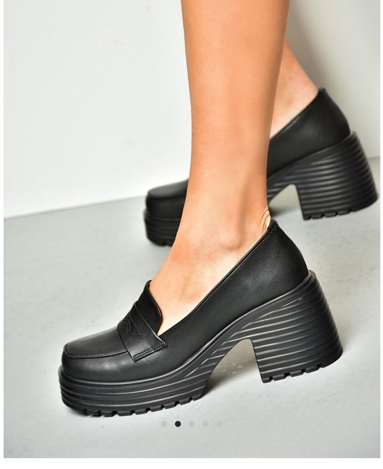 Siyah, kauçuk tabanlı, topuklu ayakkabılar. Gotik ve grunge punk tarzında, günlük kullanıma uygun. Ürün yenidir 1 defa giyildi