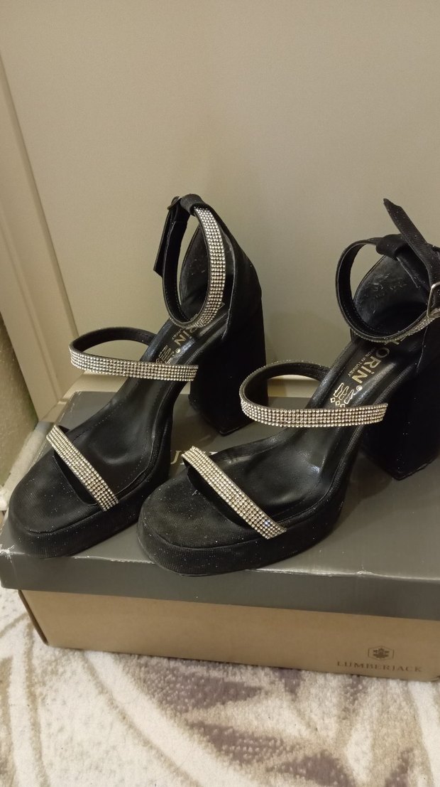 Parlak siyah platform topuklu, tokalı kayışlı kadın ayakkabısı, romantik gece için şık ve gotik tarzda. 37 38 numaraya olur simli taşlı topuklu ayakkabı 1 kere giyildi pazarlık payı vardır.