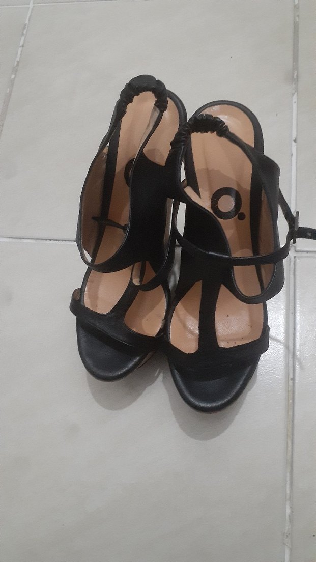 Siyah, tokalı platform topuklu kadın ayakkabısı. Minimalist tasarımıyla romantik akşamlar için uygundur.