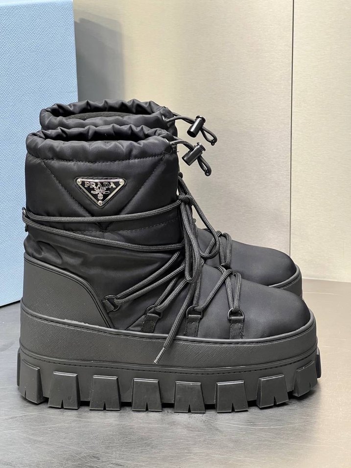Dış mekanda kullanıma uygun, kemerli detaylara sahip siyah platform topuklu kadın botları. Prada ️İthal ürün & imported 36-37-38-39-40-41