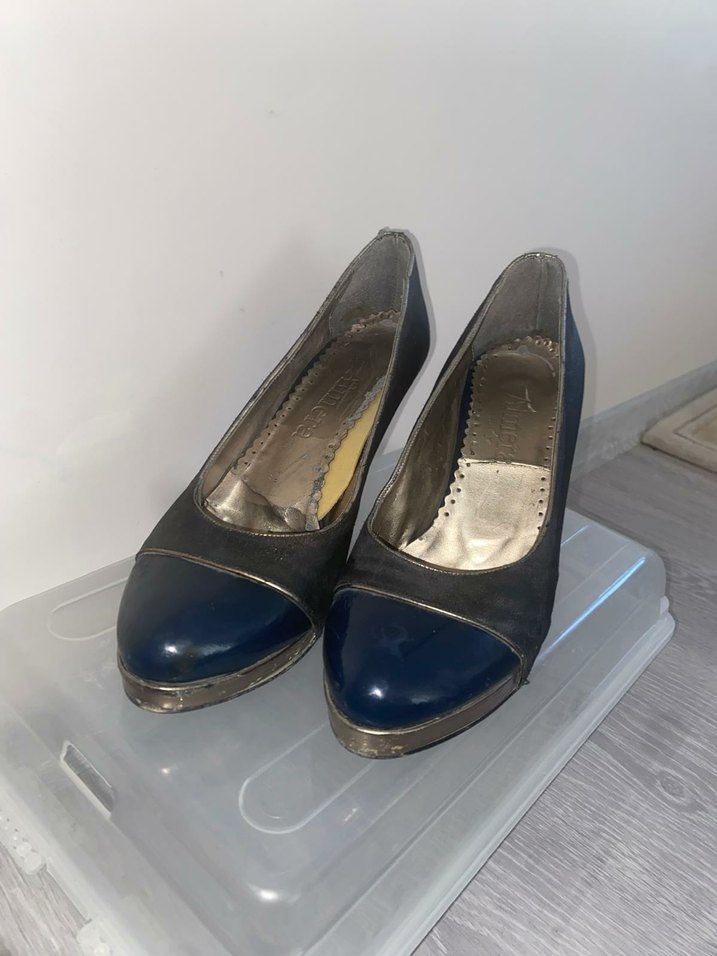 siyahvi platform topuklu, tokalı gece ayakkabısı. Kauçuk malzemeden, modern klasik tarzda, ofis ve şık kullanıma uygun.