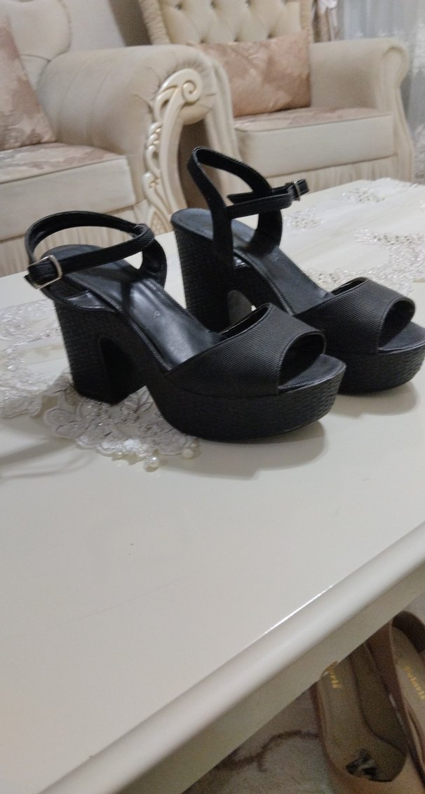 Siyah Platform Topuklu Kadın Gece Ayakkabısı