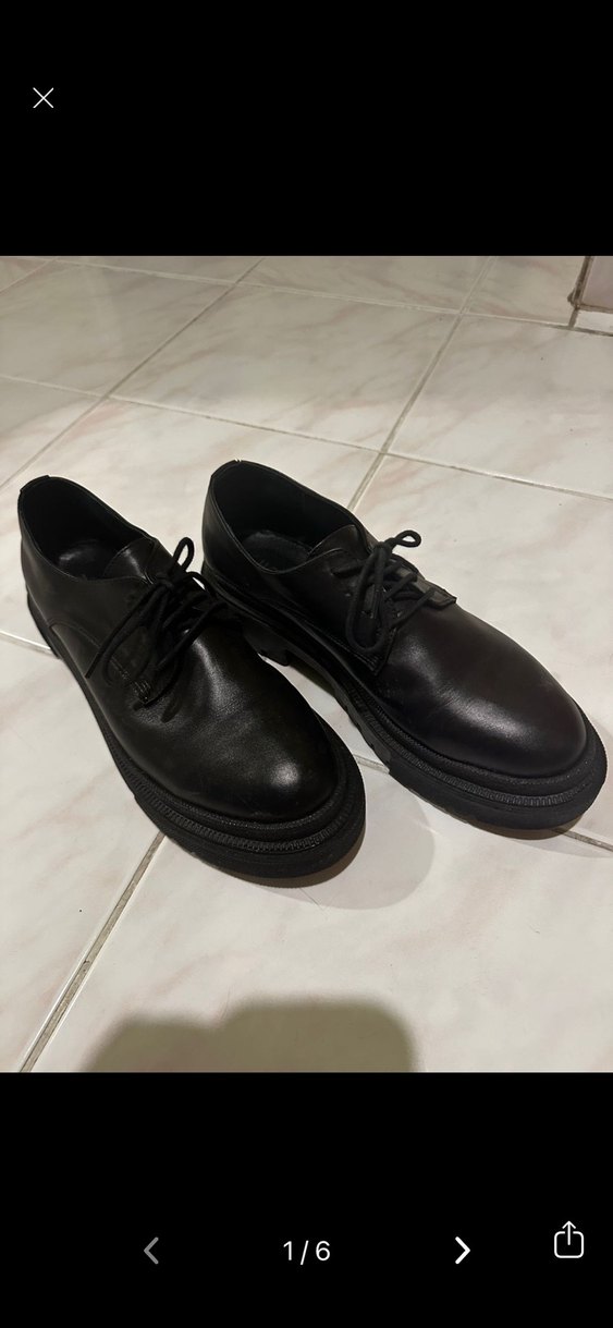 Siyah platform topuklu kadın klasik ayakkabı, minimalist gotik tarzda. Kauçuk malzemeden, desensiz ve ofis kullanımı için uygun. Zahmetsiz şıklık ve sade tasarım.