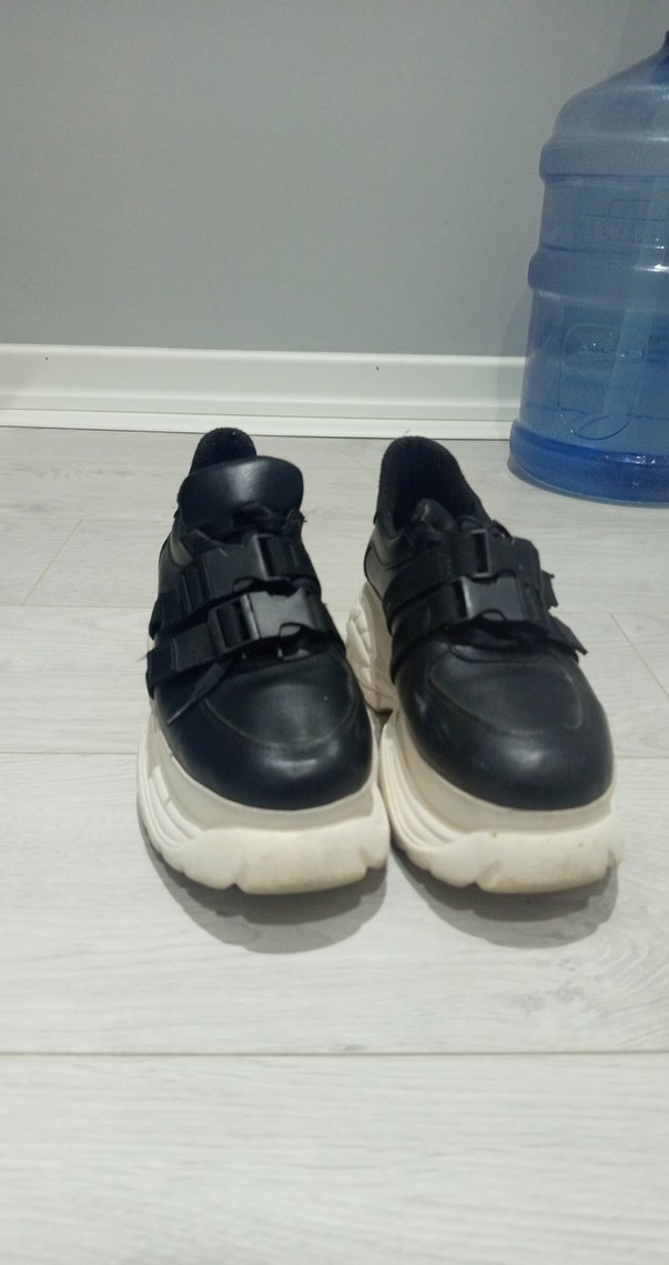 Siyah renkte, lastik malzemeden platform topuklu ve tokalı kadın spor ayakkabısı. Sokak stili ve günlük kullanıma uygundur. çok az kullanildi belki Max 3 4 kere giymişimdir birkac kusuru var gibi duruyor ama silmeyle/boyamayla geçecektir