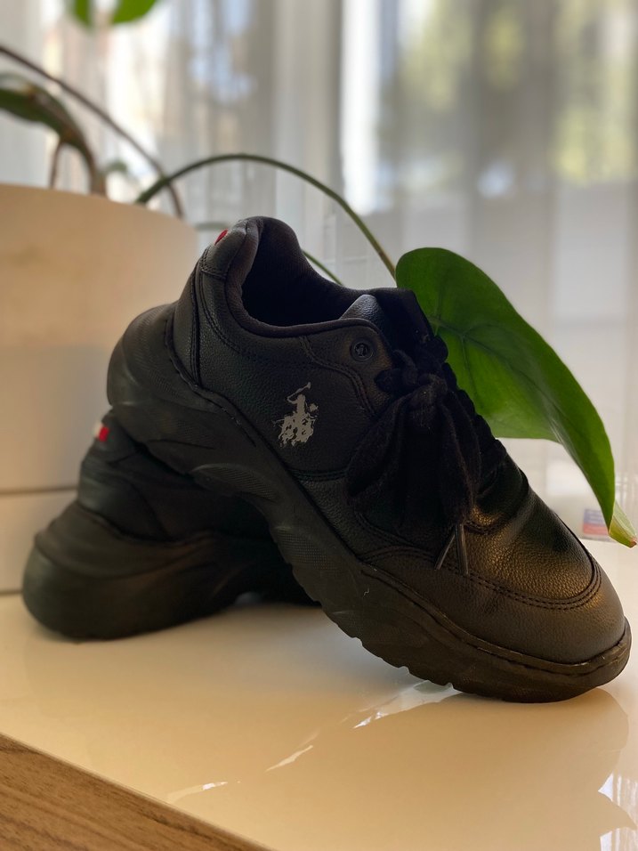 Spor ve sokak modasına uygun, siyah platform topuklu kadın spor ayakkabısı. Kauçuk tabanlı, rahat ve şık, zahmetsiz şıklık sunar.