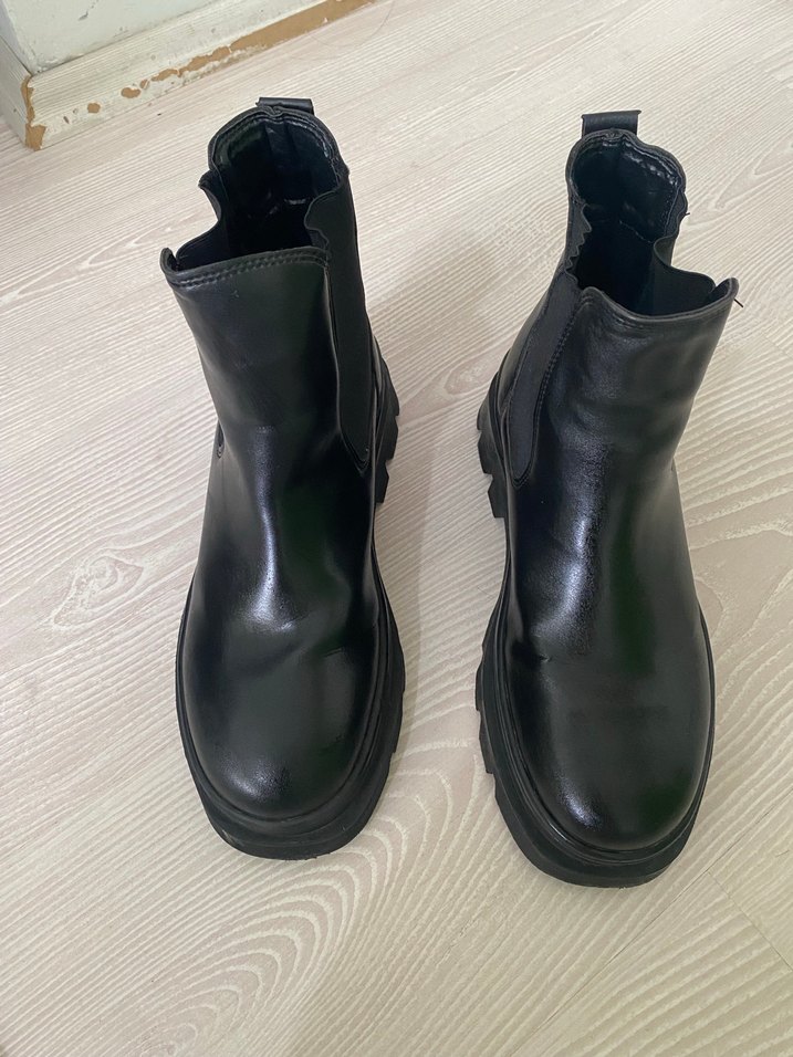 Siyah lastik botlar, platform topuklu detaylara sahip. Trend sokak stili için uygun, günlük kullanıma ideal goth tarzında. Bir kaç kez kullanıldı.