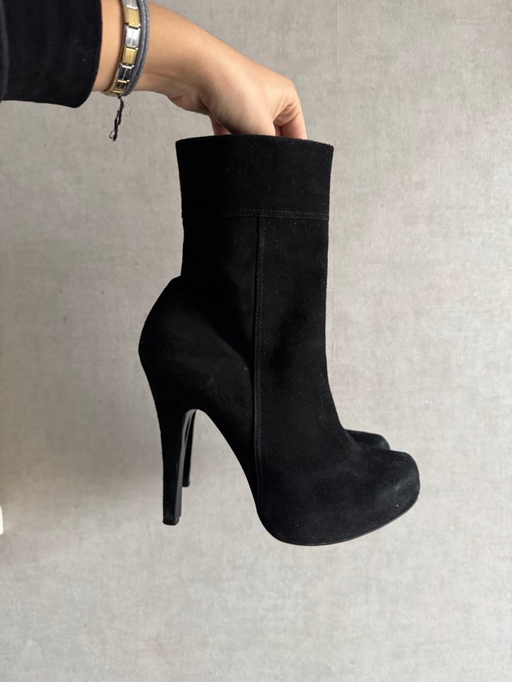 Siyah Platformlu Süet Topuklu Ayakkabı