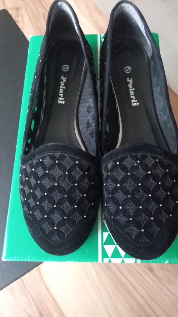 Siyah renk, pliseli ve blok topuklu kadın babetler. Kauçuk malzemeden üretilmiş, günlük kullanım için uygundur. Marka: Polaris.