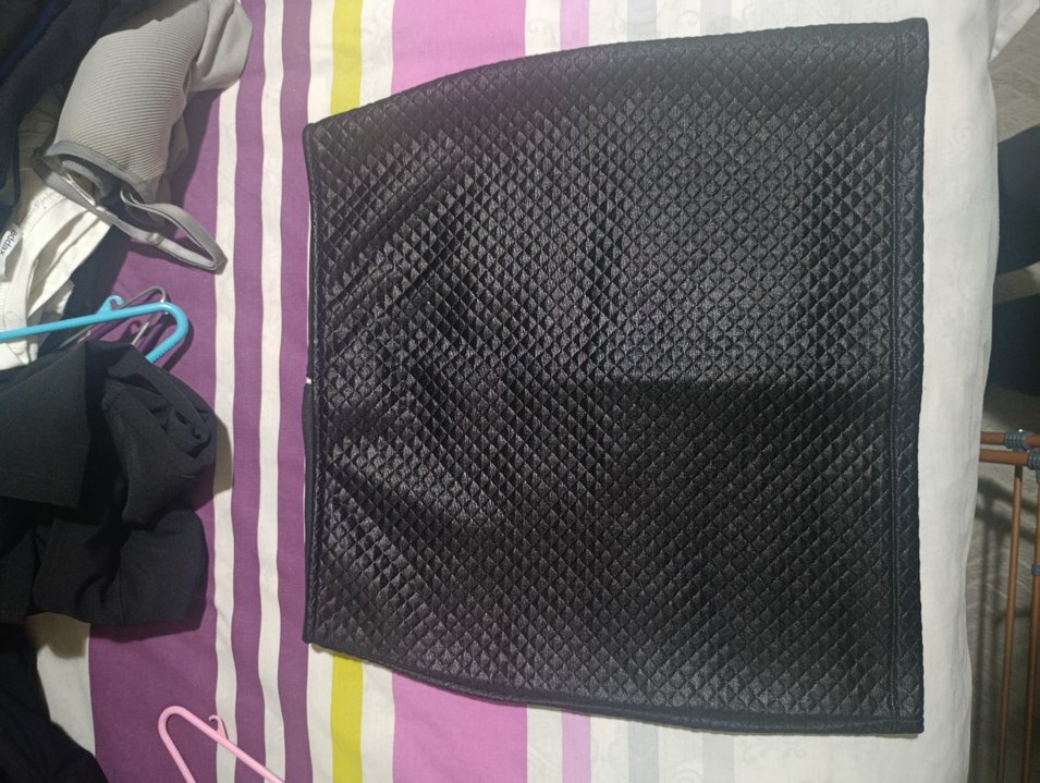 Siyah renk, pliseli ve normal midi boyda, vücuda oturan h eteği. Pürüzsüz sentetik kumaştan yapılmış, spor ve sokak stili için uygundur.