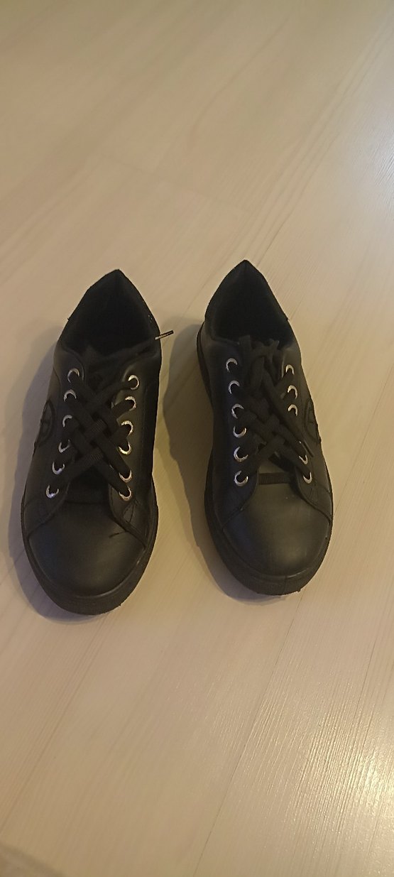Siyah arkası simli kadın spor ayakkabısı, günlük şık kullanım için uygun. Az kullanılmıştır