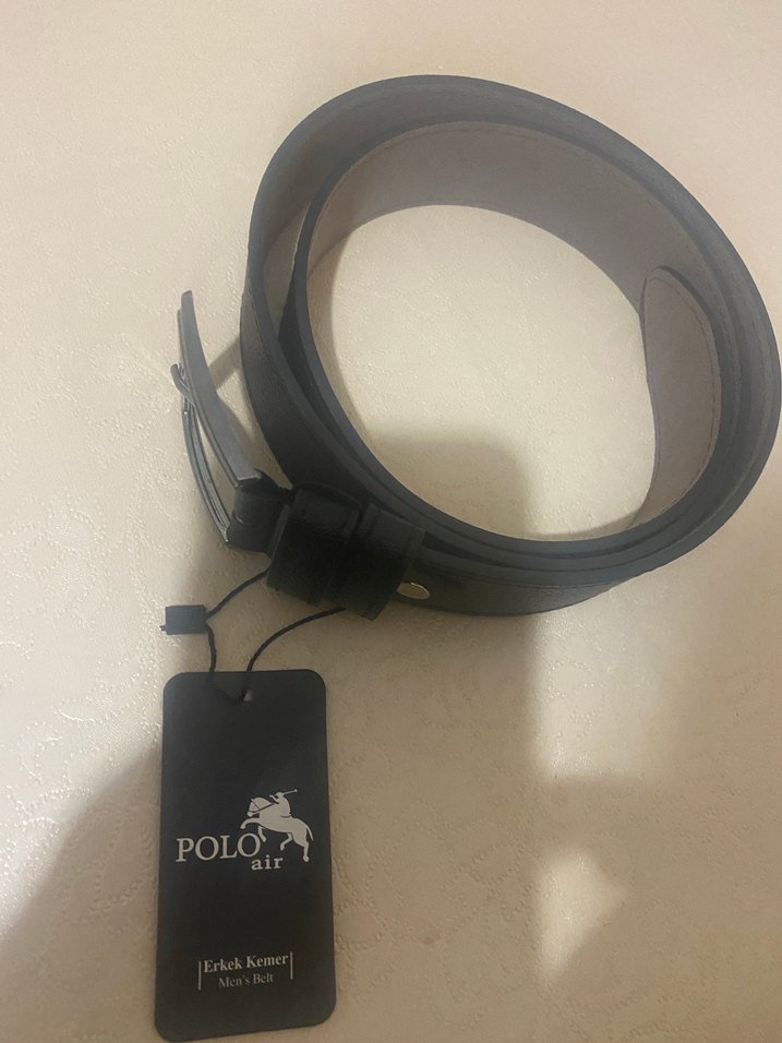 Siyah renkte Polo Air marka erkek biker kemeri, minimalist ve rock punk tarzını yansıtıyor. Üzerinde POLO air etiketi bulunur.
