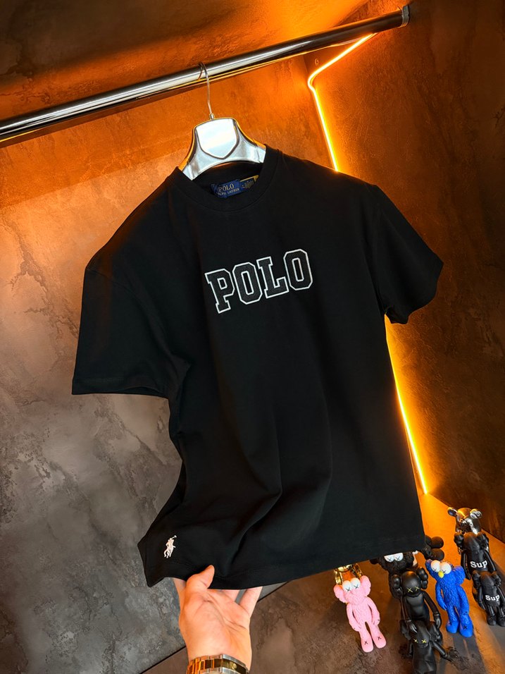 Siyah renkli, kısa kollu ve bisiklet yaka erkek tişörtü. Önünde 'POLO' baskısı bulunur. Rahat kesim ve kısa boy, yumuşak ve sıcak kumaştan üretilmiştir.