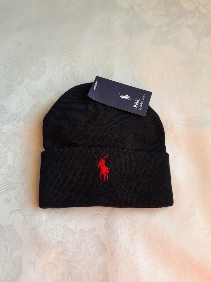 Kırmızı Polo nakışlı, siyah örme kadın bere, yumuşak ve sıcak kumaştan, trend günlük stil için uygundur.
