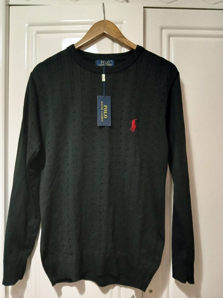 Siyah Polo Ralph Lauren örgü erkek kazak, bisiklet yaka ve uzun kolludur. Rahat ve günlük kullanım için yumuşak örgü kumaştan yapılmıştır. Düz tasarımda kırmızı logo yer alır.