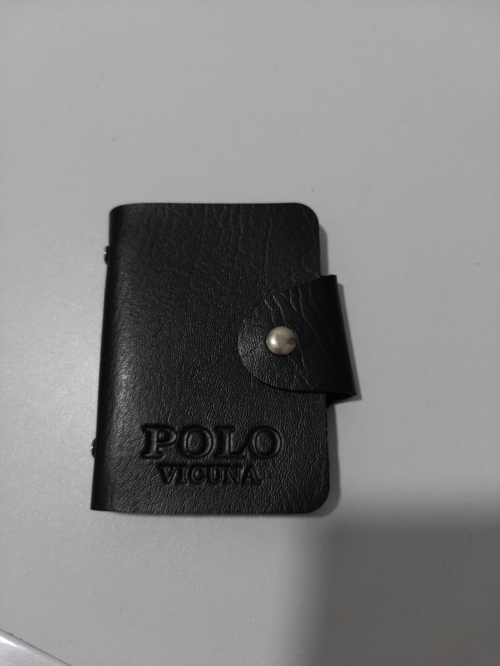 Siyah erkek cüzdan, Polo Vicuna baskılı ve çıtçıtlı kapaklı, iş tarzı ve biker stilinde tasarlanmıştır.