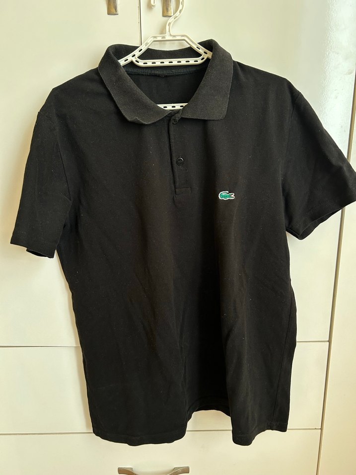 Siyah renkli, düğmeli yakalı ve kısa kollu unisex polo tişört. Rahat kesimiyle günlük sokak stili için uygundur.
