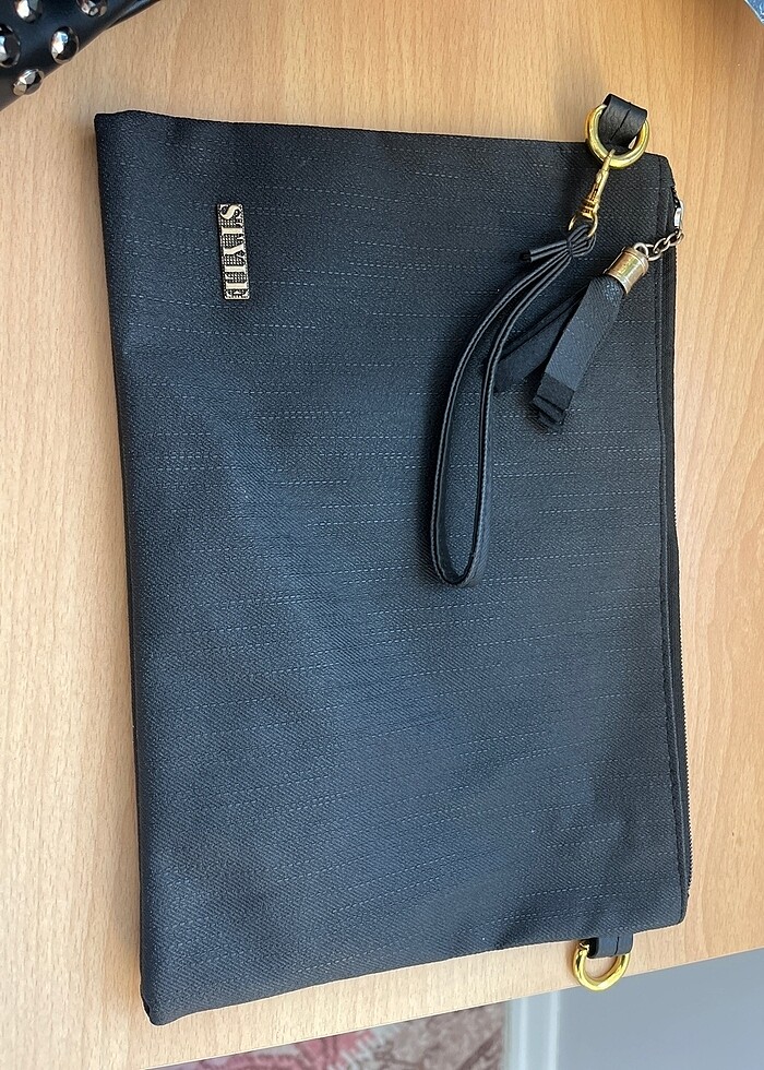 Siyah renkli ve portföy çanta hiç kullanmadı sadece dolap bekledi ve askısı da vardır yandan da takılır
