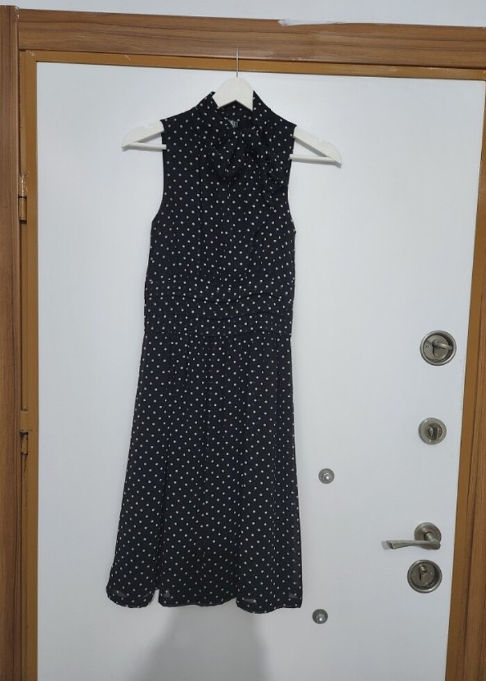 Siyah puanlı şifon elbise