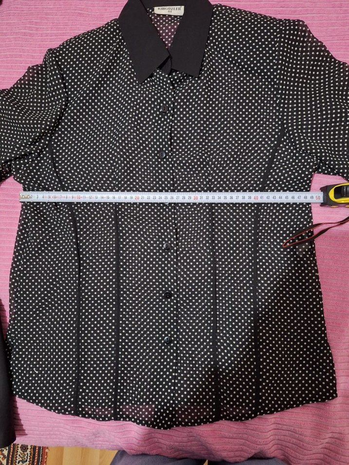 Siyah Puantiyeli Kadın Uzun Kollu Şifon Gömlek