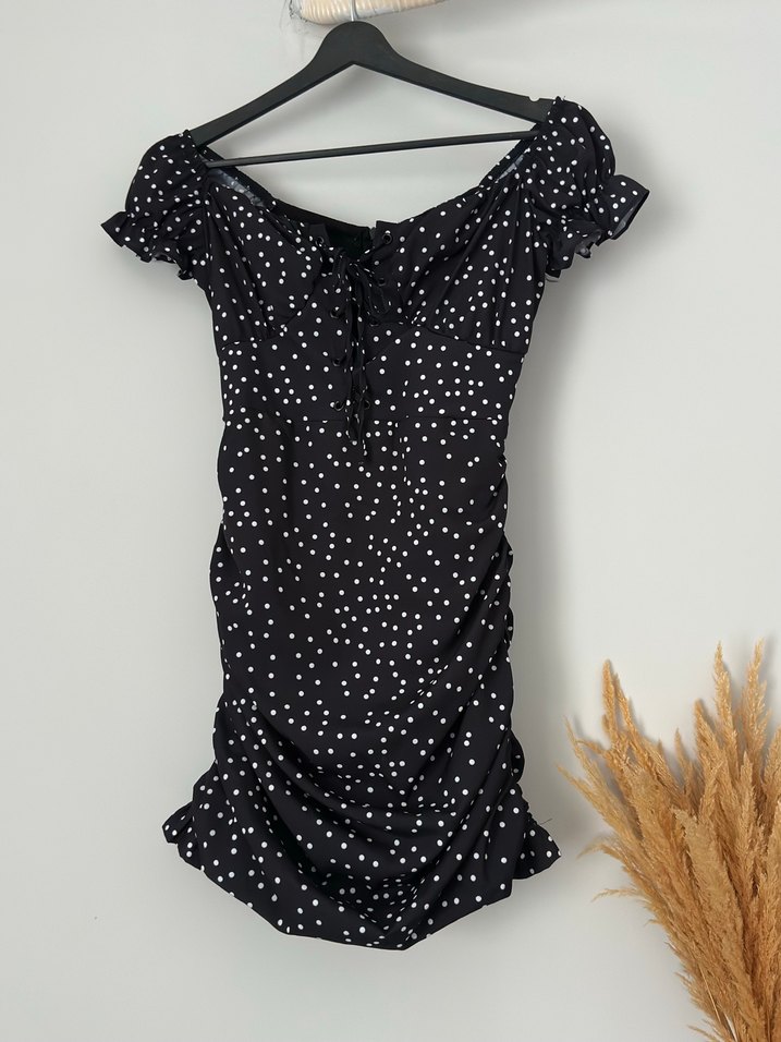 Siyah Puantiyeli Mini Fırfırlı Elbise