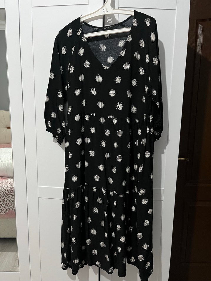 Siyah Puantiyeli Uzun Salaş Elbise