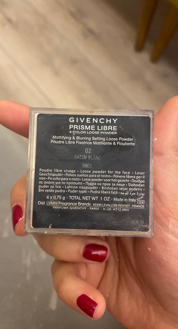 Üstünde beyaz logo bulunan şık tasarımlı siyah kompakt pudra kutusu, makyaj tazelemek için uygun.