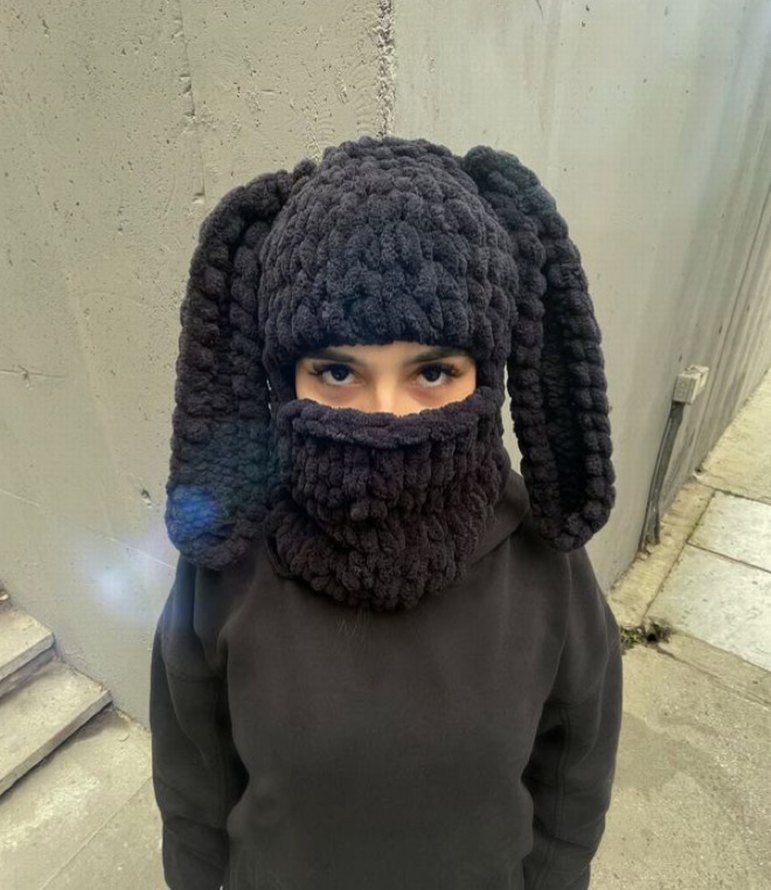 Siyah Puffy tavşan kulaklı balaklava