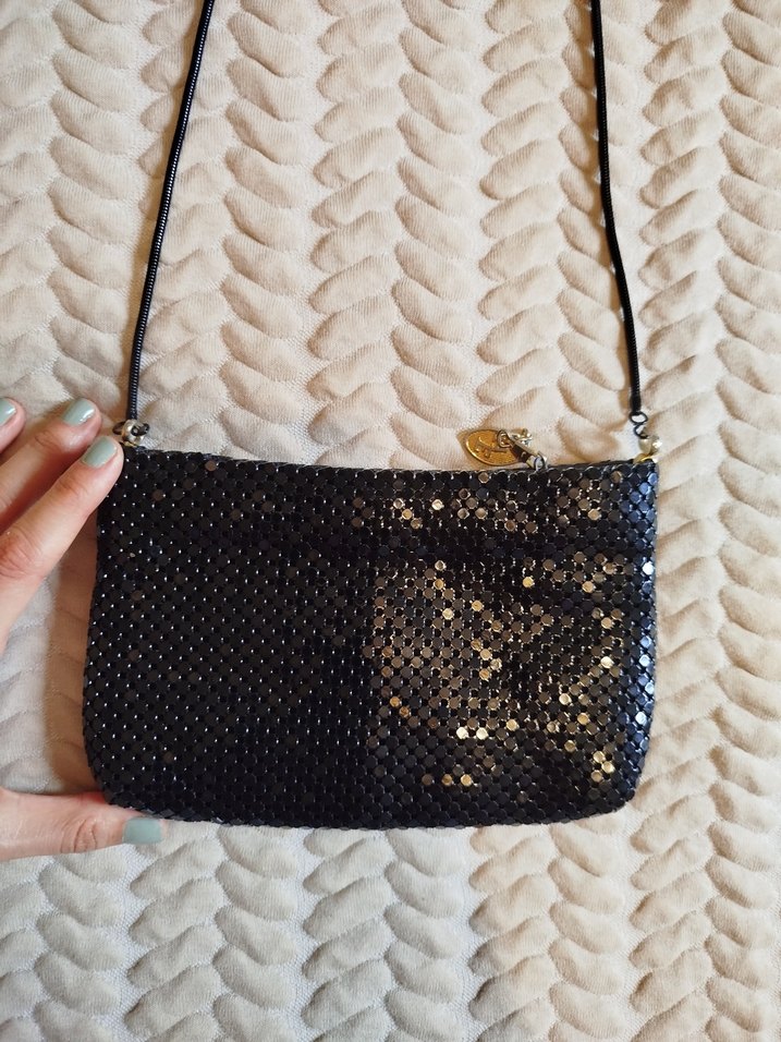 Siyah pul desenli fermuarlı çanta