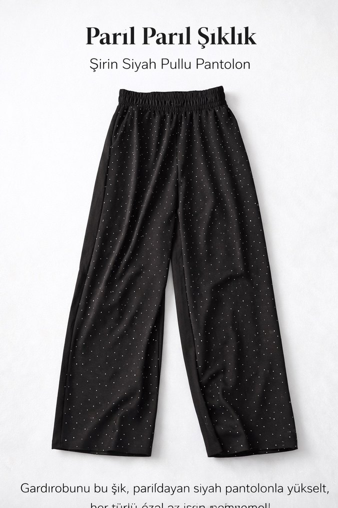 Siyah Pul Detaylı Salaş Kadın Pantolon