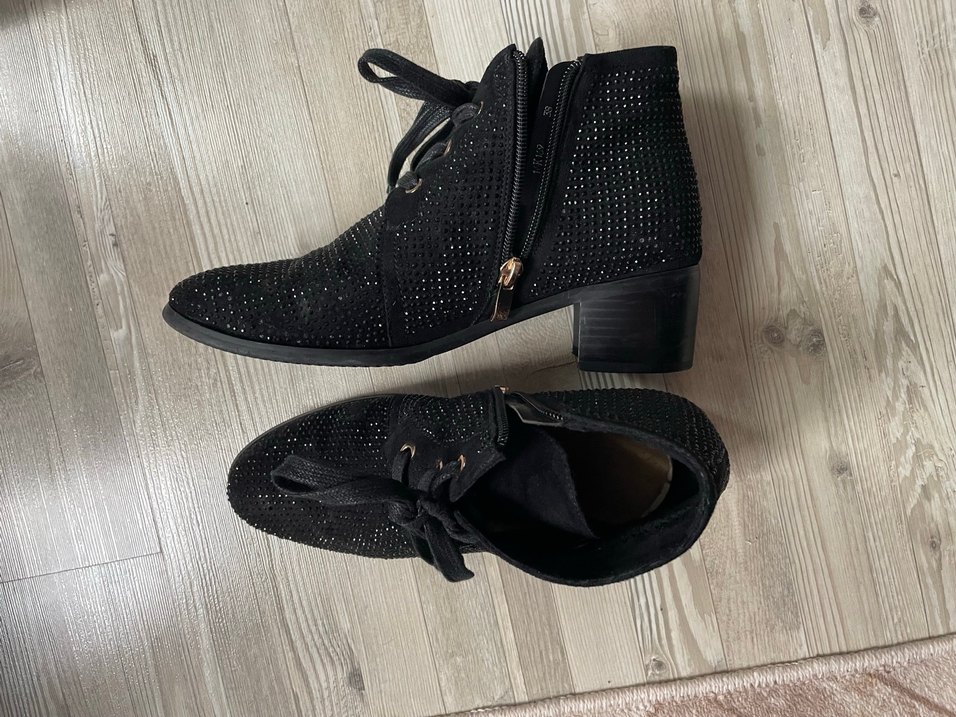 Siyah Pul Detaylı Süet Blok Topuklu Bot