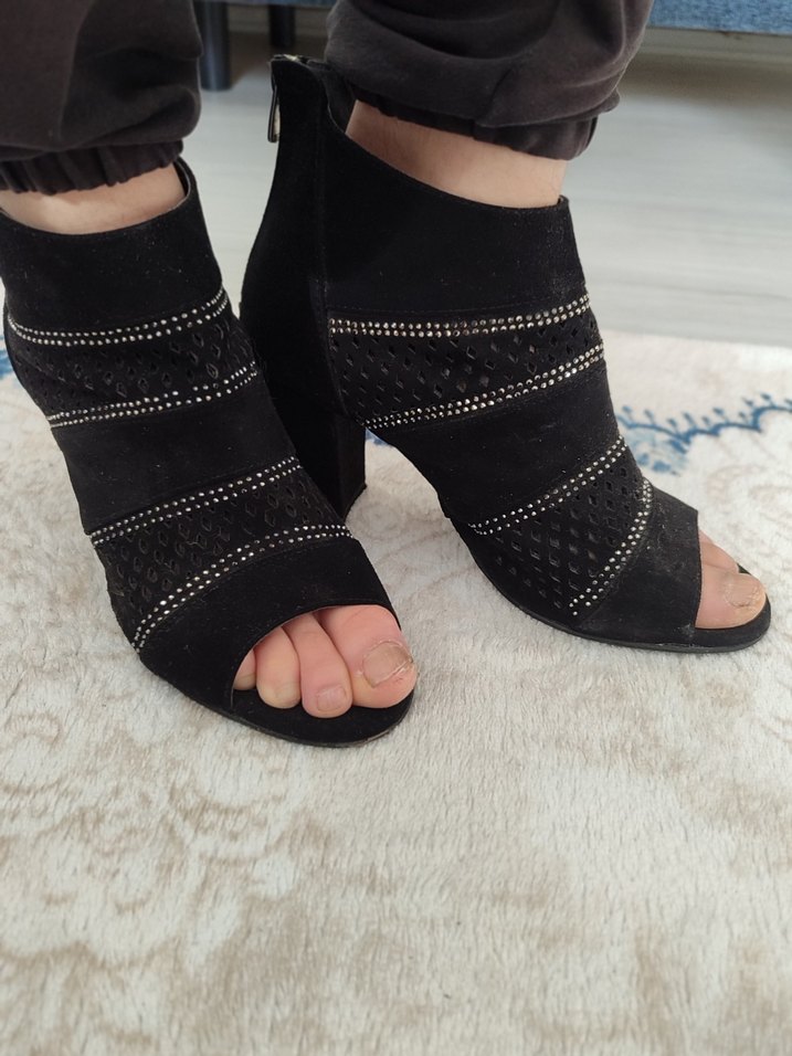 Siyah Pul Detaylı Topuklu Bot