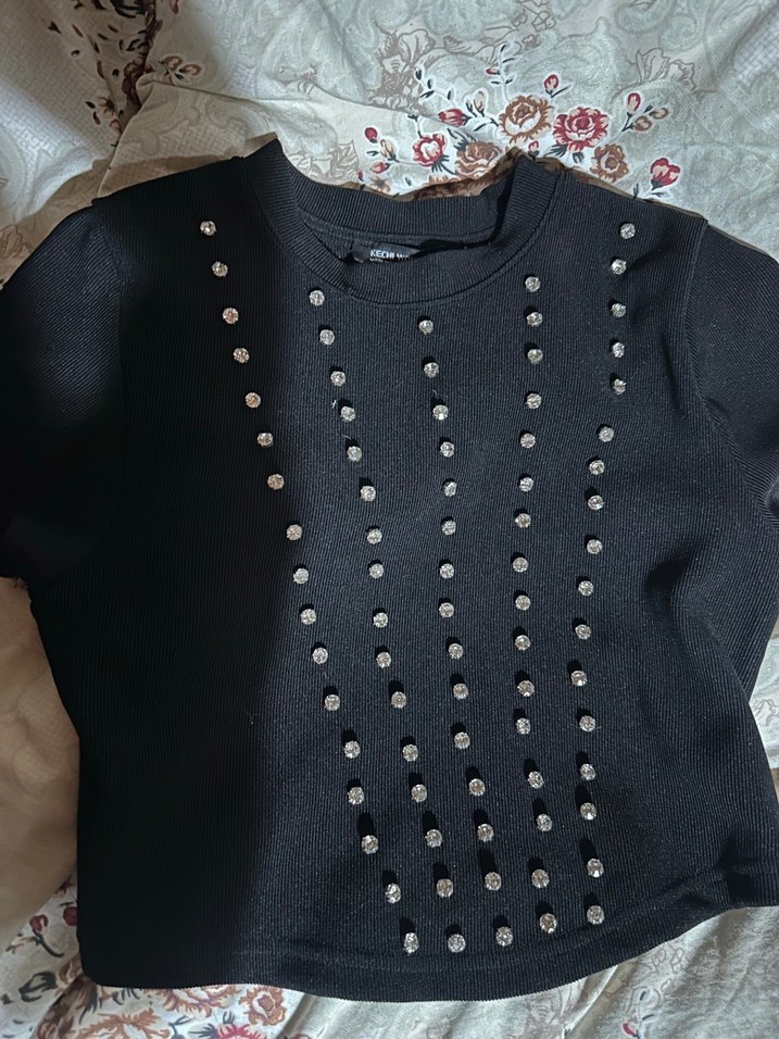 Siyah triko kumaştan, uzun kollu ve bisiklet yaka olan bu kazak, pul işlemeli dikey çizgilerle süslenmiştir. Gotik ve şık bir görünüm sunar, gündelik kullanıma uygundur. Hiç giymedim bedeni yanlış alındığı için