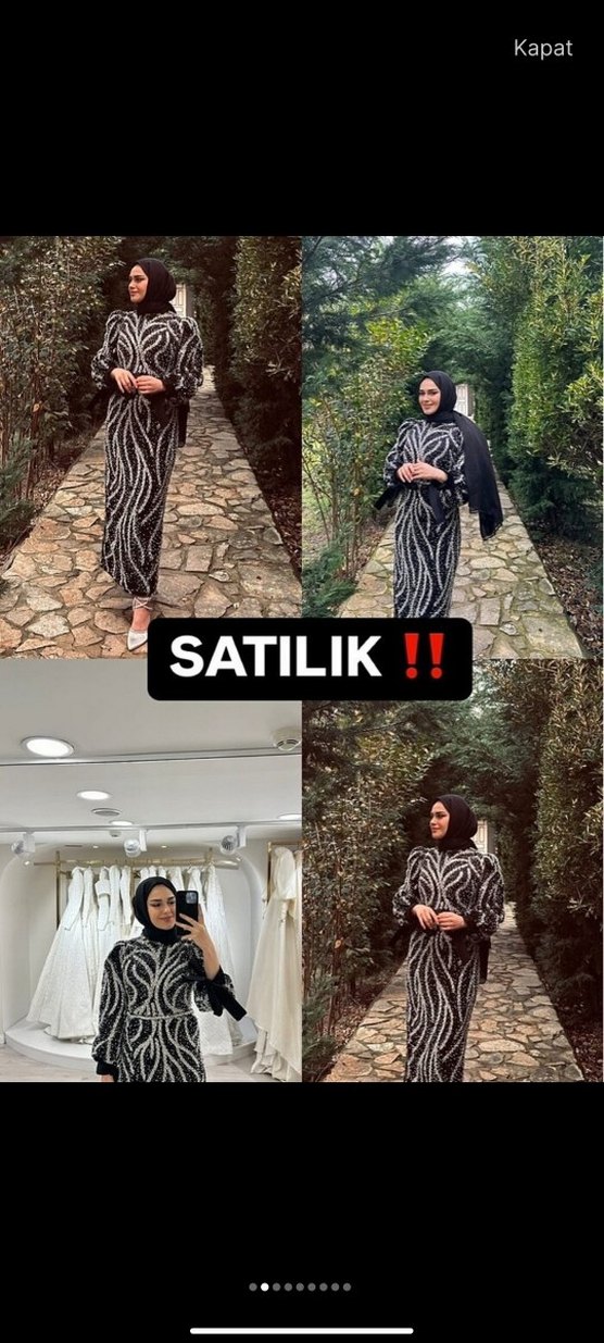 Uzun siyah elbise, yılan deseni ve pul işlemeli detaylara sahiptir. Balıkçı yaka, kalem özel tasarım arkası ipli 42-44 beden uyumlu
