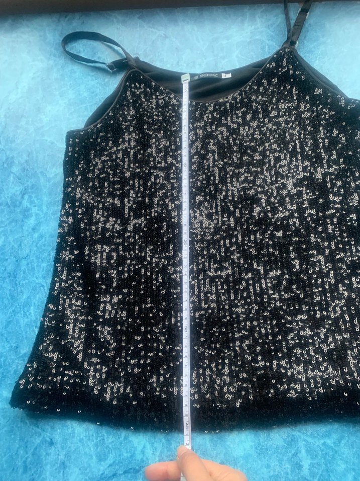 Siyah pullu işlemeli askılı kolsuz siyah atlet. İşlemeli desenli, normal midi boyda, sokak stili ve dış mekan kullanımı için uygun.
