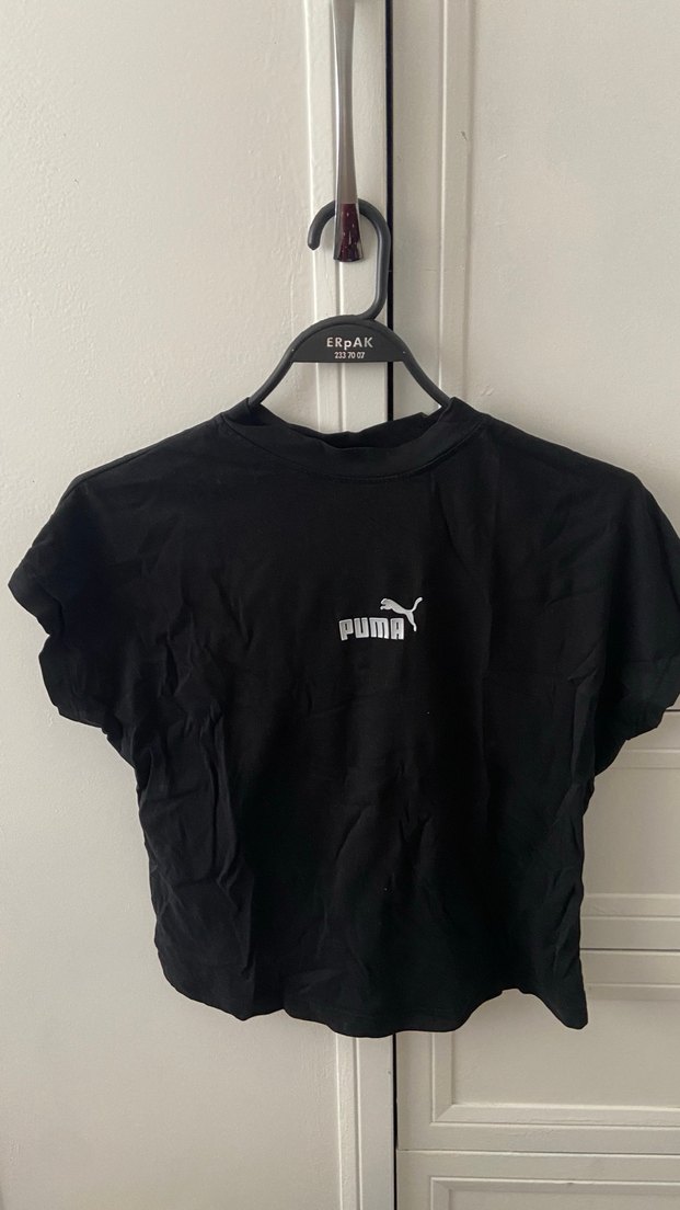 Kızlar için fitted kesim, kısa kollu, bisiklet yaka siyah tişört. Yumuşak keten kumaştan, önünde baskılı Puma logosu bulunur.