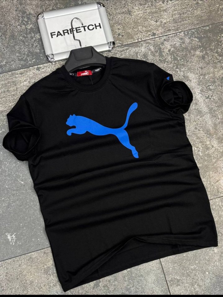 Siyah Puma Baskılı Kısa Kollu Tişört