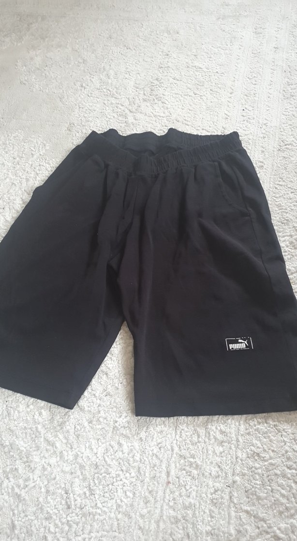 Siyah, bol kesim ve midi boy erkek spor şortu, sentetik kumaştan, sade tasarımlı ve Puma logosu bulunur. Spor ve günlük kullanım için uygundur.