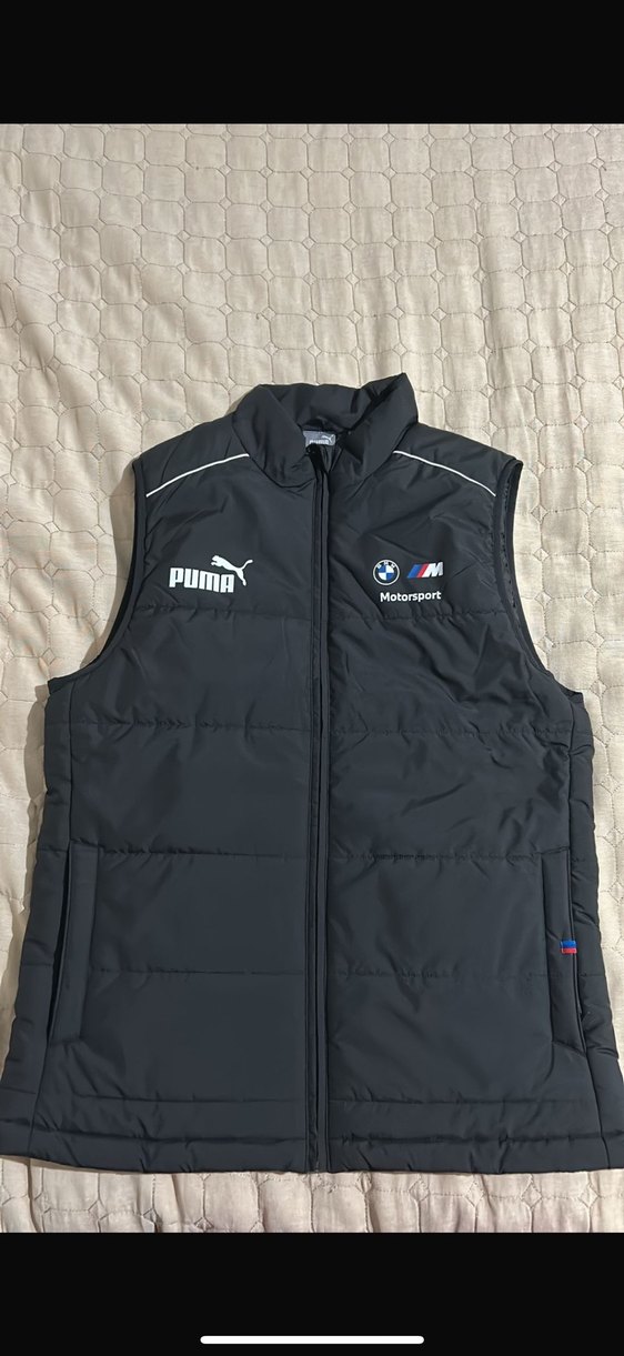 Siyah renkli, fermuarlı, bisiklet yaka ve atlet kesim Puma Motorsport erkek spor yelek. Yumuşak ve sıcak dokulu kumaş kullanılmış.