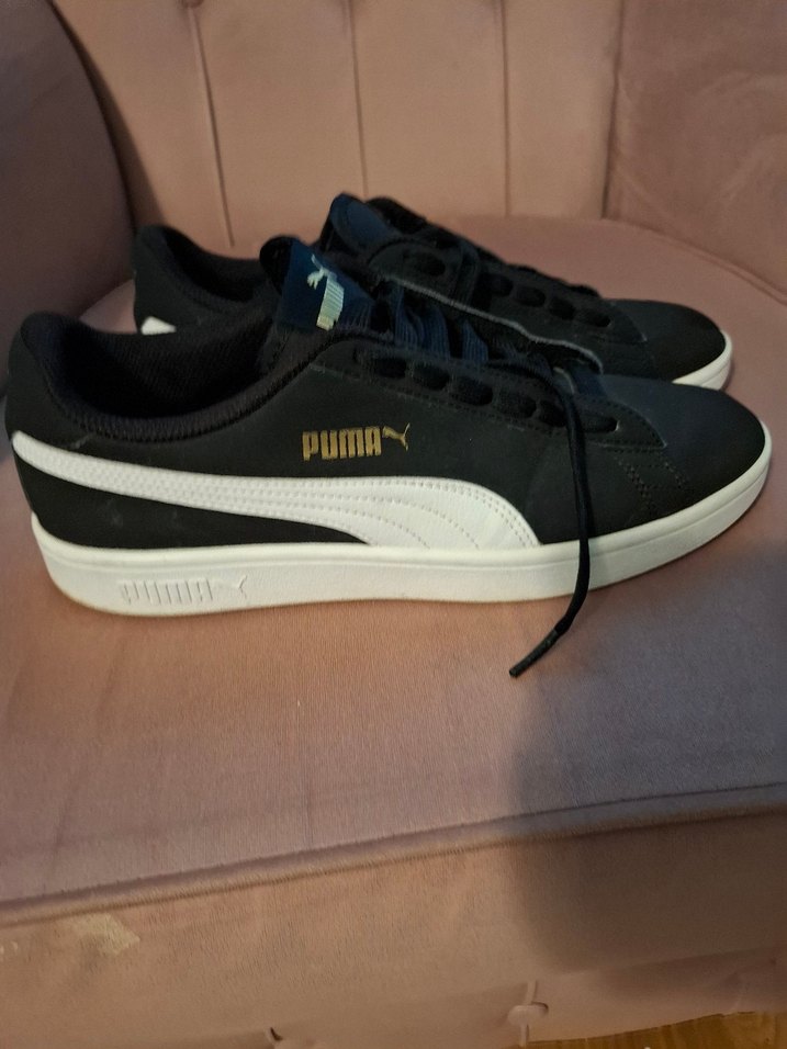 Siyah renkli Puma spor ayakkabı, topuk , spor ve sokak stiline uygun kauçuk tabanlı.