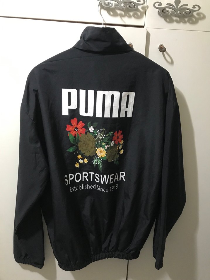Siyah renkli Puma rüzgarlık, yüksek yakalı ve uzun kolludur. Fermuarlı cepleri ve rahat kesimi ile spor ve günlük kullanıma uygundur.