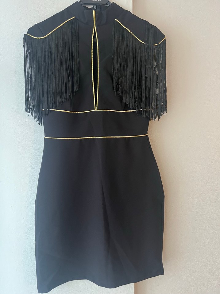 Boyu 85 cm beli 34 cm arkadan fermuarlı altın renk iplikli etiket L ama terzide yapıldığı için 34 cm şu an